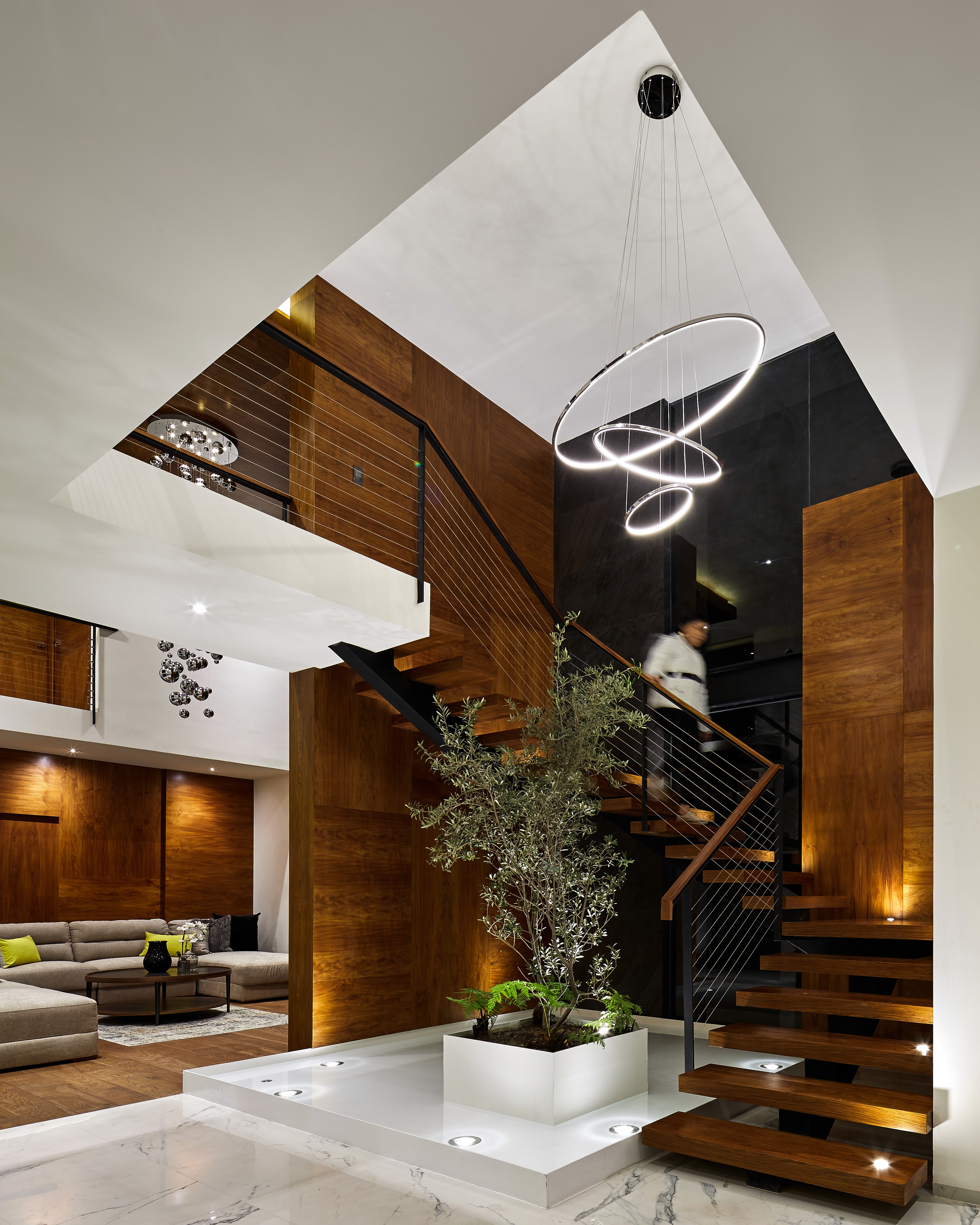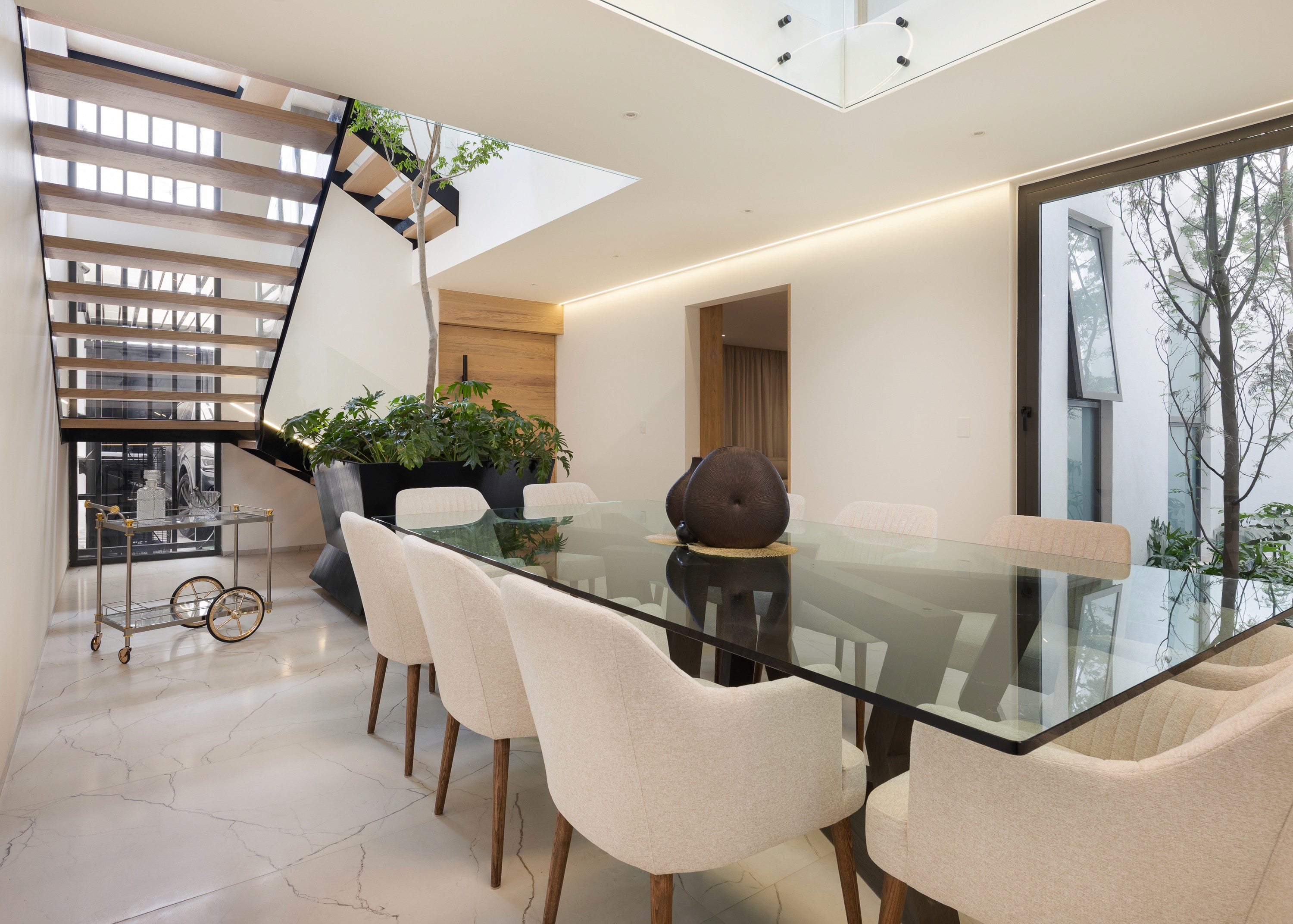 La escalera principal es uno de los espacios más importantes, no sólo por su calidad estética sino por ser el vestíbulo principal que deen el funcionamiento del proyecto