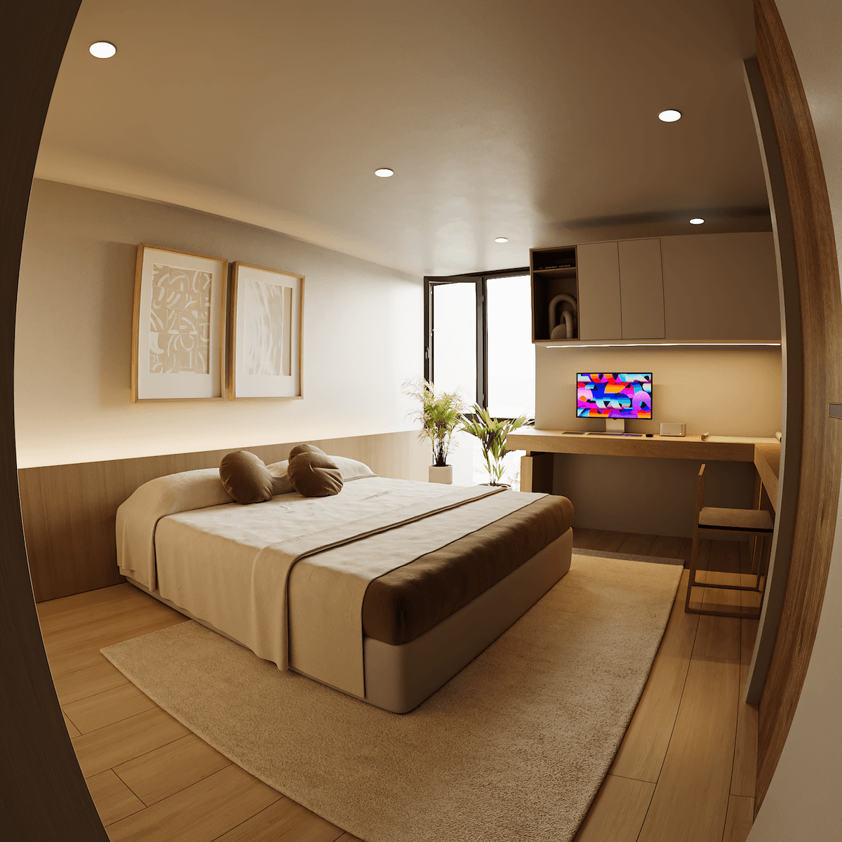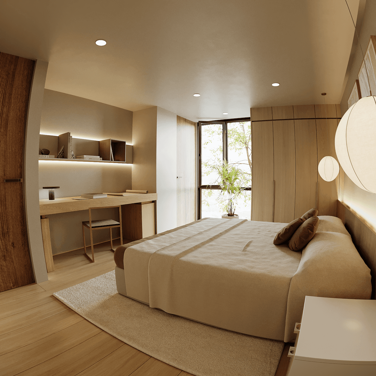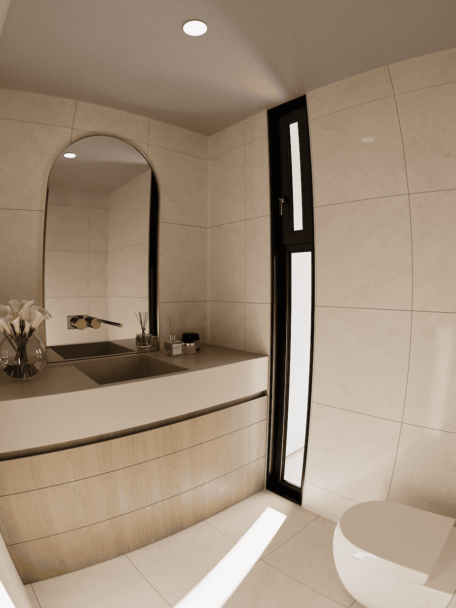 El proyecto adopta un estilo Moderno-Minimalista que maximiza la sensación de amplitud en un metraje reducido, priorizando la iluminación natural, la conexión visual entre los espacios y la honestidad de los materiales. La arquitectura es una síntesis de formas limpias y una paleta cromática serena, creando un ambiente acogedor a pesar de su rigor formal.