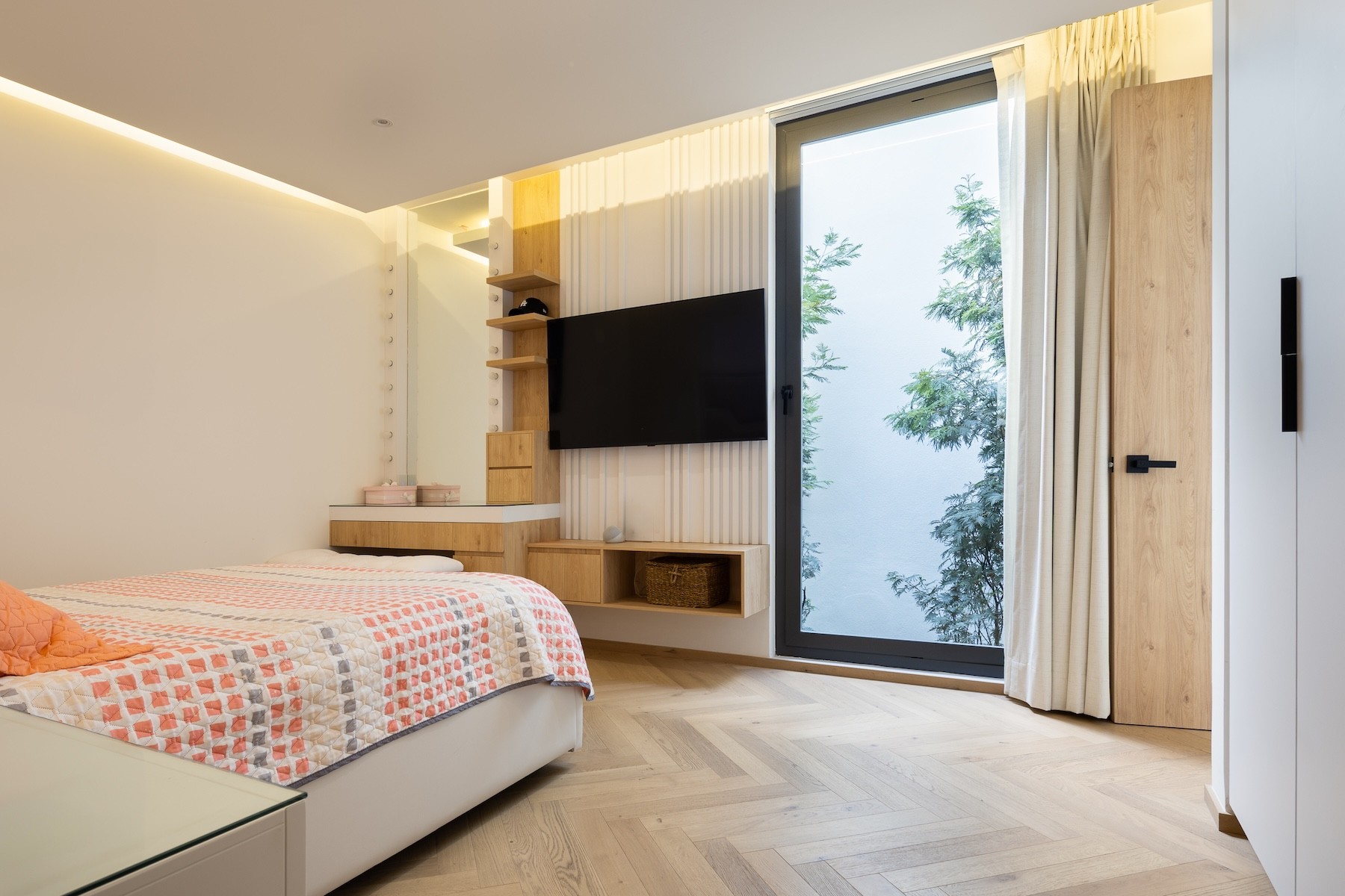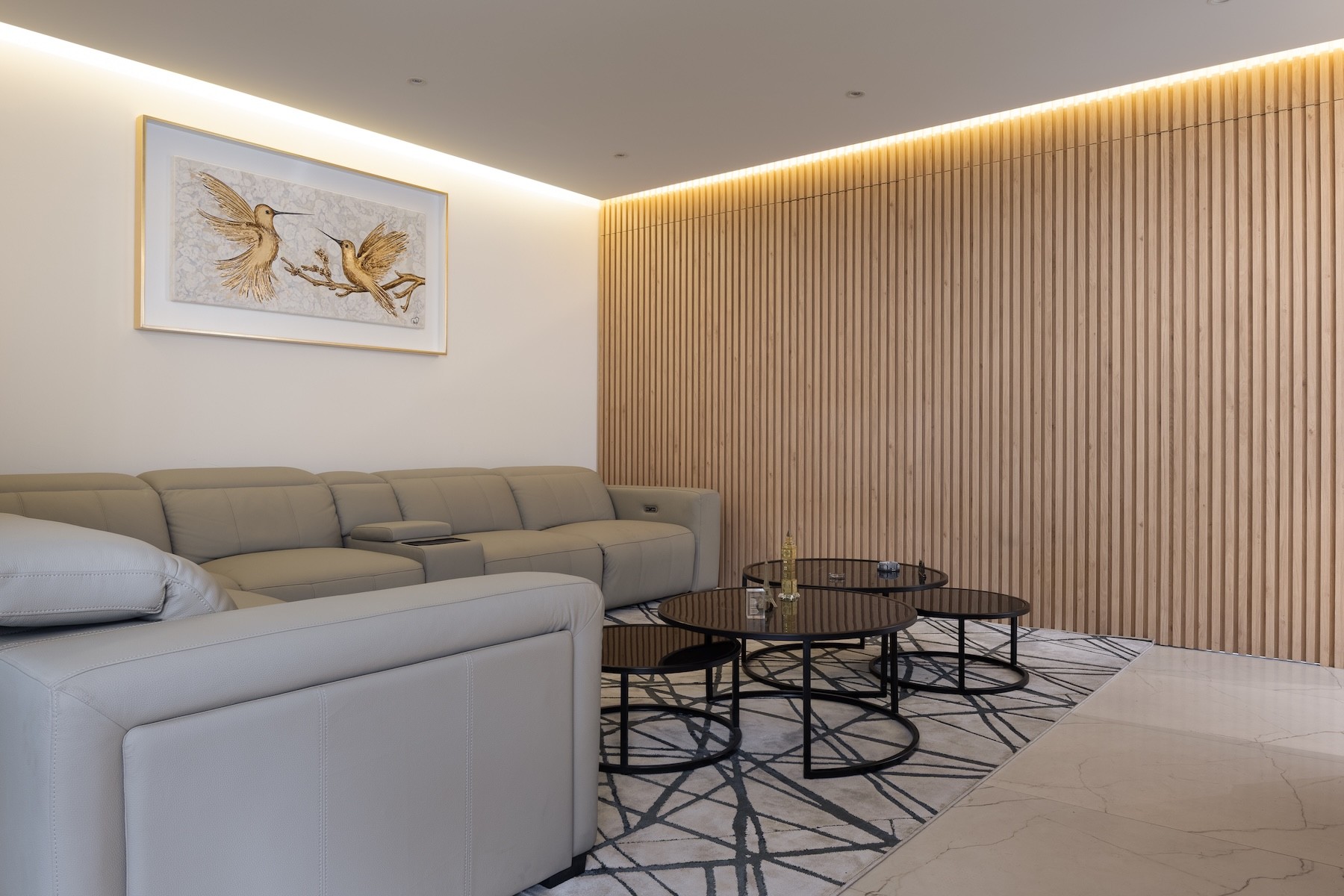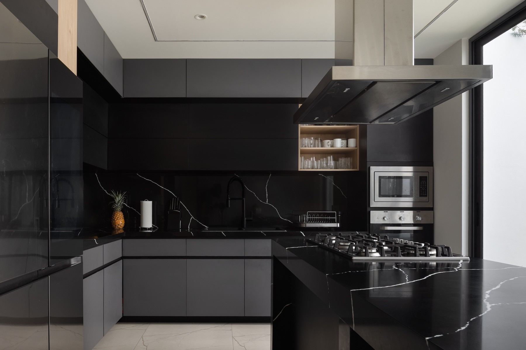 Cada elemento, desde la fachada hasta la distribución interior, está pensado para generar un ambiente de introspección y disfrute personal, donde la vida se despliega en un universo propio, rico en diseño y confort. La luz natural es cuidadosamente controlada y dirigida, no para abrirse indiscriminadamente, sino para esculpir volúmenes y realzar texturas en el corazón del hogar.