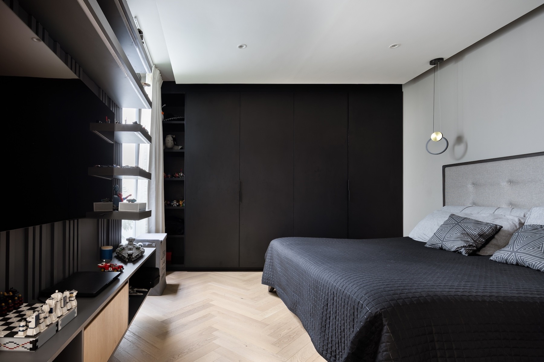 El interiorismo se manifiesta a través de un estilo moderno y distintivo, donde la paleta de colores neutros (blancos puros, grises sofisticados y negros profundos) sirve de telón de fondo para la riqueza de materiales y acabados.