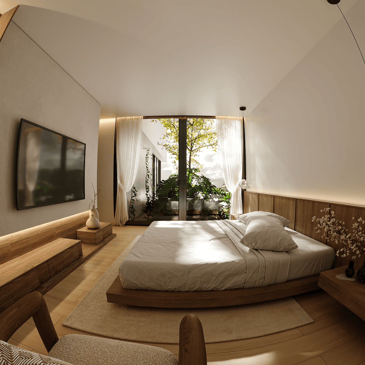 "Casa Raíz" se concibe como un santuario de serenidad y conexión con la naturaleza, donde la arquitectura se fusiona armoniosamente con el entorno.