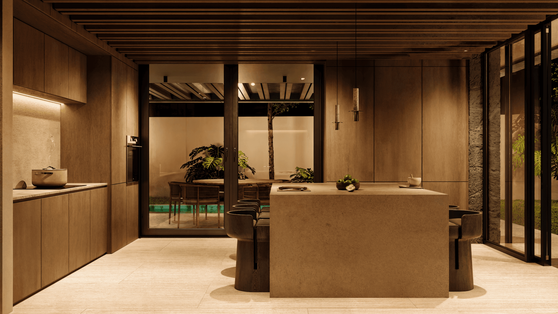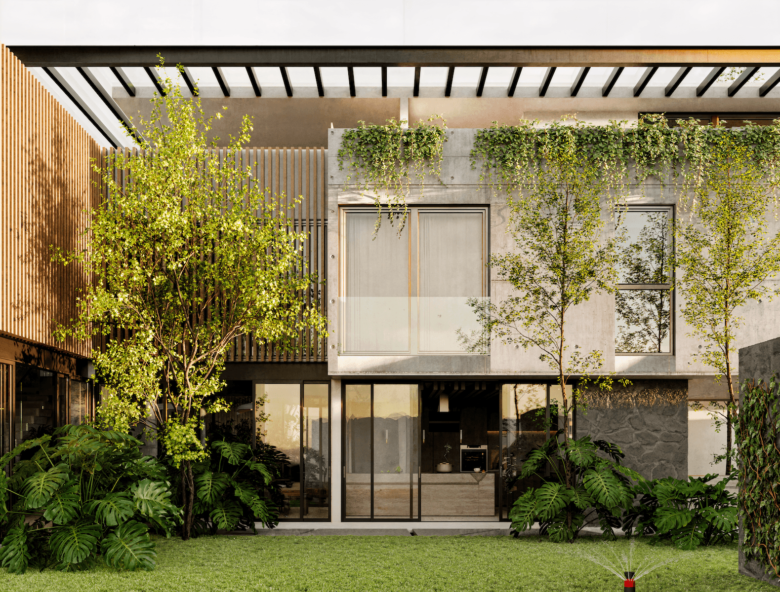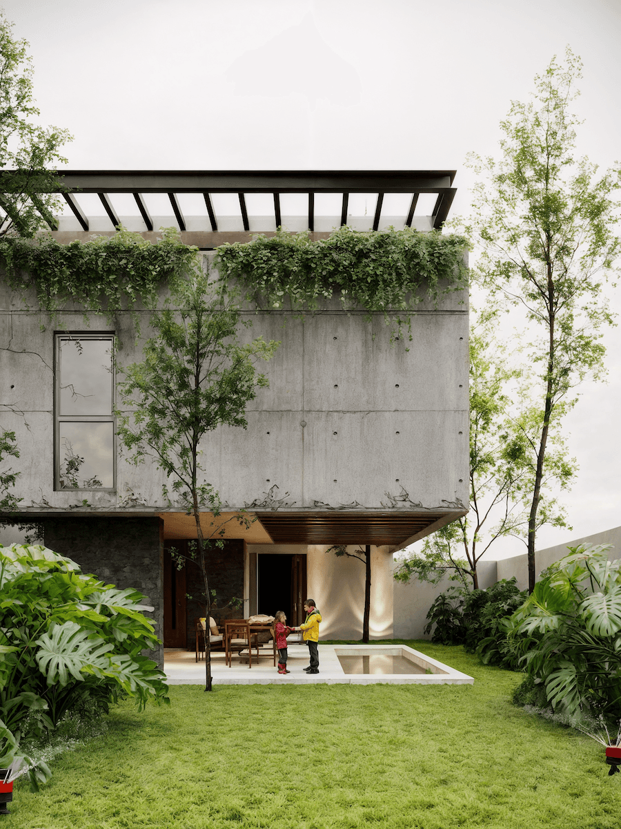 "Casa Raíz" se concibe como un santuario de serenidad y conexión con la naturaleza, donde la arquitectura se fusiona armoniosamente con el entorno.