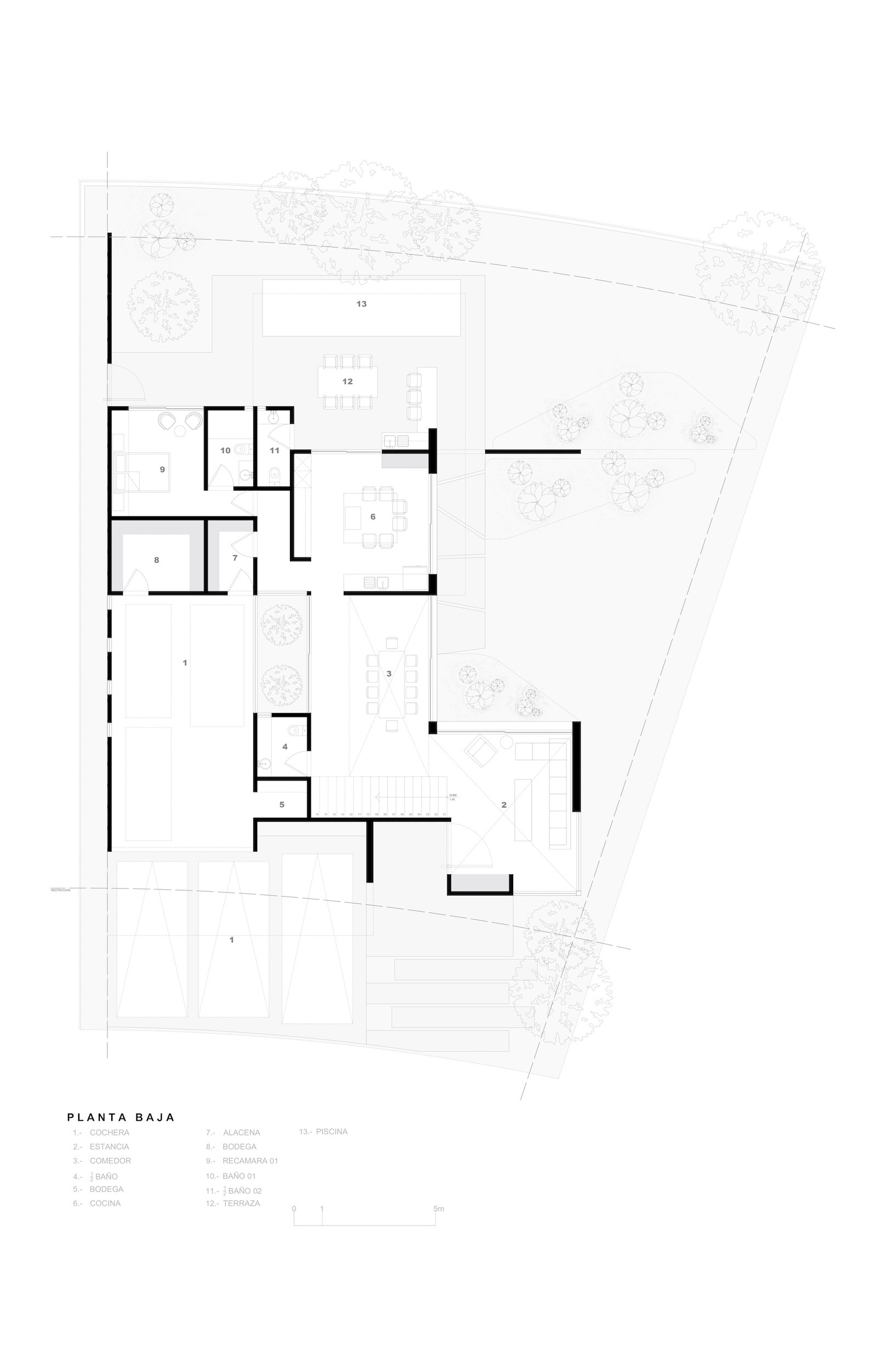 Casa Mazuga se desplanta con volumetrías solidas y pesadas, que se conjugan con el sitio, muestra carácter y firmeza en su lenguaje arquitectónico.