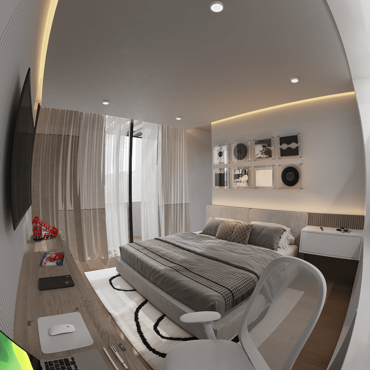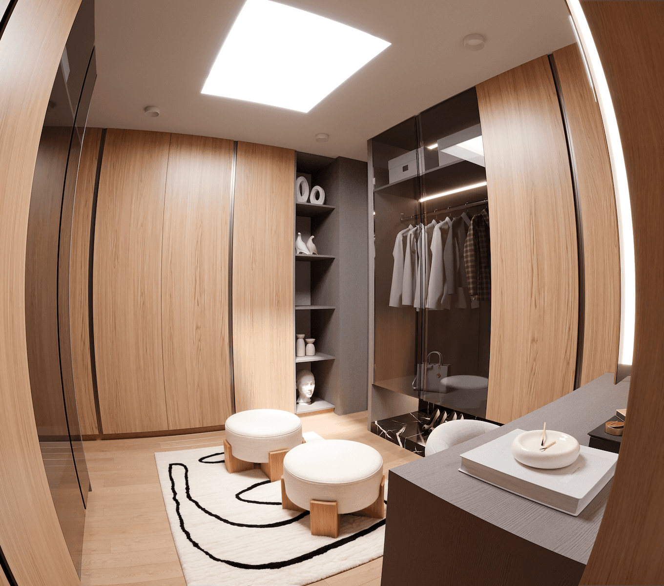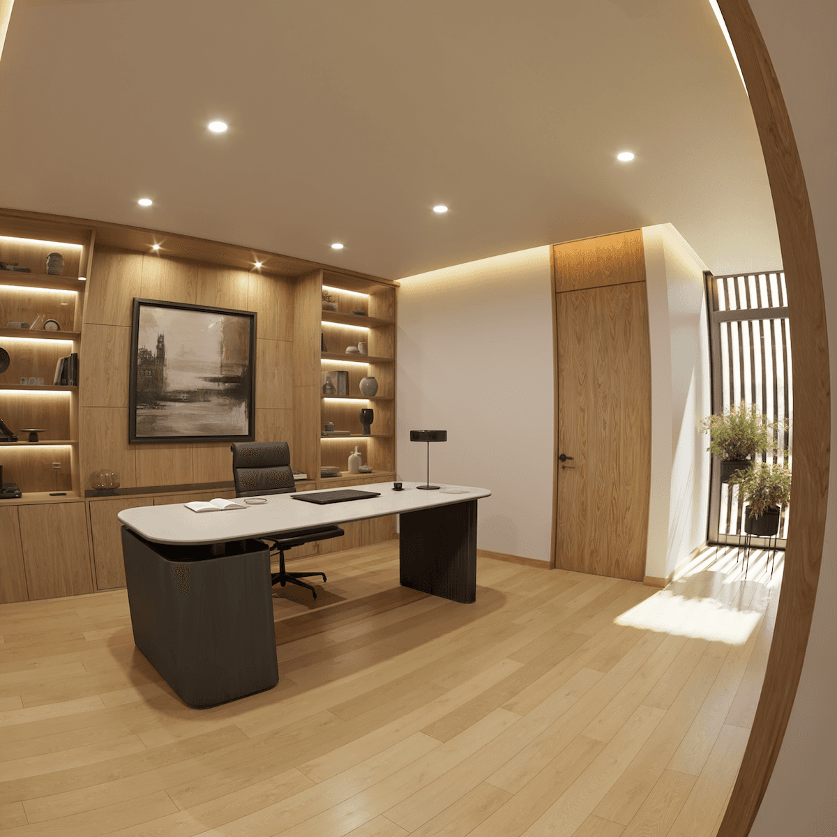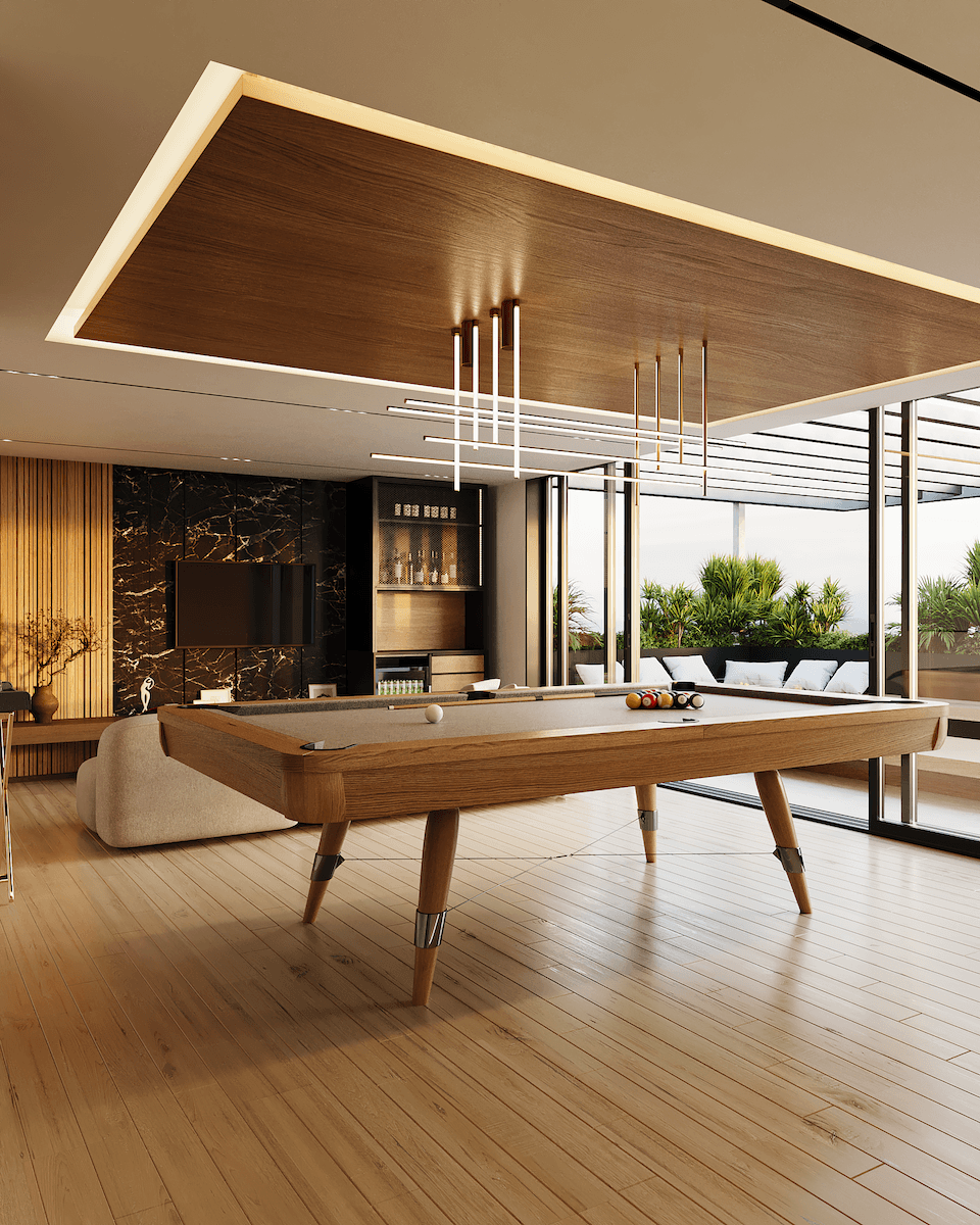 Su éxito reside en la elegante combinación de materiales, donde la calidez de la madera y la neutralidad de la piedra se encuentran con el contraste dramático del mármol negro, todo ello al servicio de un objetivo primordial: enmarcar las vistas y proveer una experiencia de vida luminosa, cómoda y moderna.