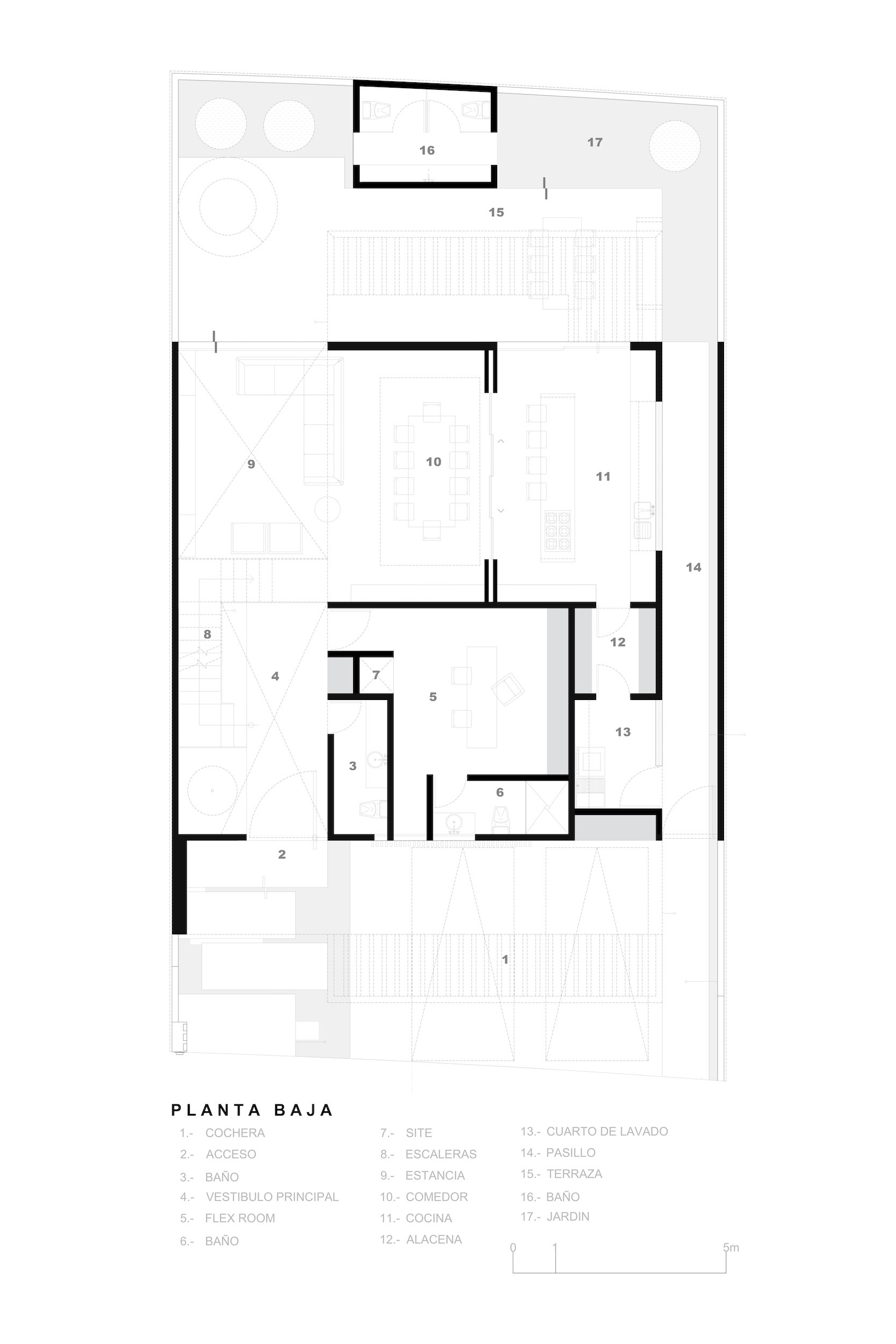 Casa Mazuga se desplanta con volumetrías solidas y pesadas, que se conjugan con el sitio, muestra carácter y firmeza en su lenguaje arquitectónico.